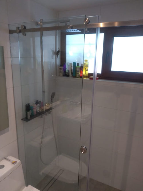 SHOWER DOOR ACERO INOXIDABLE GRIS Y CRISTAL TEMPLADO 10 MM